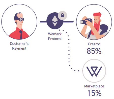 As for working on the Wemark platform, another scenario awaits the photographer. If you place works on an innovative marketplace, the photographer will be able to contact customers directly. Taking into account the mark-ups of the centralized bank, it is advisable for the photographer to reduce the cost (up to about 75 $). Accordingly, the work will be sold cheaper for the buyer. Thus the author will receive not 15 $, but 60 $. This type of transaction is beneficial for all users of the Wemark platform. For a transaction in Blockchain you will have to pay a small commission. It is incommensurably small, compared to 85% in photobanks.